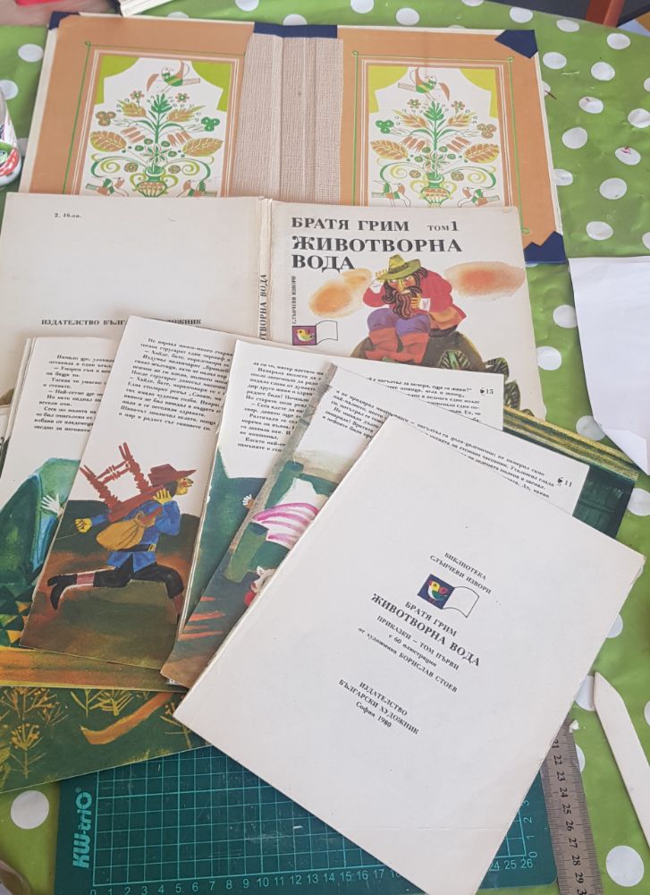 Няма да крия, че най-голямо удоволствие ми доставя да реставрирам детски книги. Затова и работата по възстановяването на тези книжки беше едно от най-приятните неща които правих през последният месец. Донесе ми ги възрастен човек с отношение към книгите. Всъщност, всички мои клиенти притежават такова. Желанието му беше да реставрирам вътрешният и външният им вид като максимално запазя първообраза. Искаше да ги запази и остави в наследство на своите внуци. Пък, ако внуците не искат да четат, ще ги даря на някого, но нека да го направя в добър вид, ми каза накрая. Срещата с такива хора винаги изпълва душата ми!